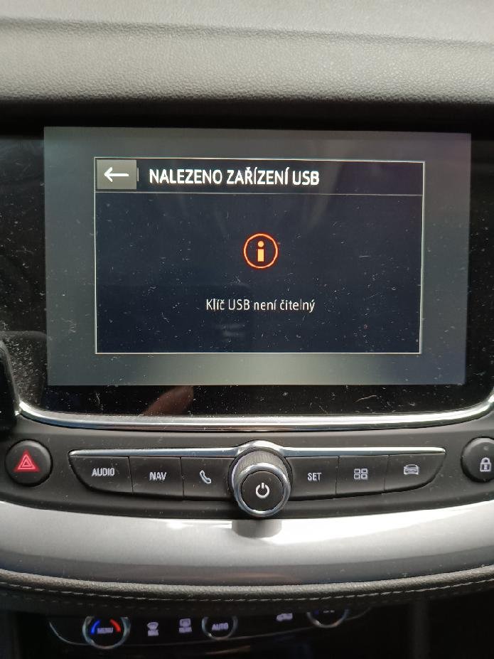 Aktualizace softwaru a aktualizace map pro Windows,stahla z MyOpel do pocitace. Nasledne pripojeno prazdne usb 32 gb,ktere se naformatovalo. Zacalo kopirovane,ktere bylo posleze ukonceno. Priprava USB disku je dokoncena. Po zasunuti usbecka do auta,pred uprednim nastartovani a zapnutim klimy,co je doporuceno v navode k aktualizacim,na obrazovce hlasky : CHYBA NOSICE - na klici USB neni zaden obsah kategorie Media a druha hlaska AKTUALIZACE -verze neni kompatibilni s hardware. Mluvil jsem ze servisem,jestli to udelaji pri pravidelne rocni prohlidce,ze neni problem ale sluzba spoplatnena cca. 5kilem. Komunikoval jsem taky s MyOpel a bylo mne receno toto: