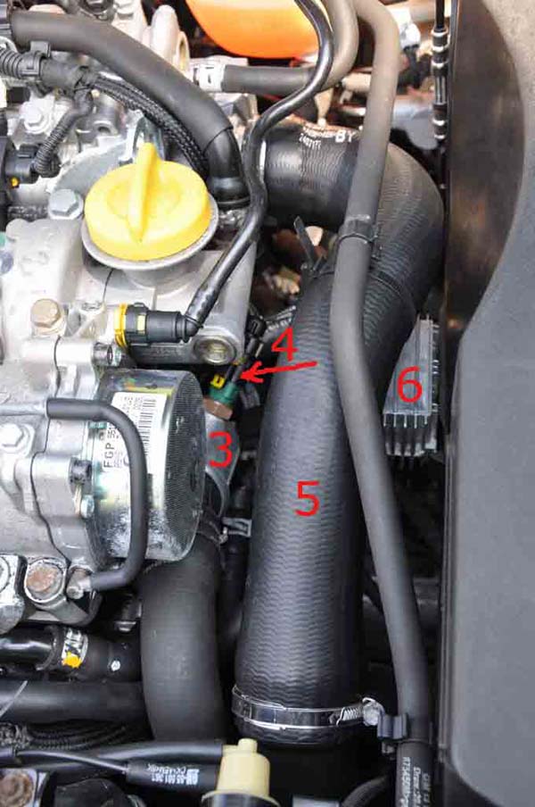 - 5 vzduchová hadice (od EGR ventilu)
