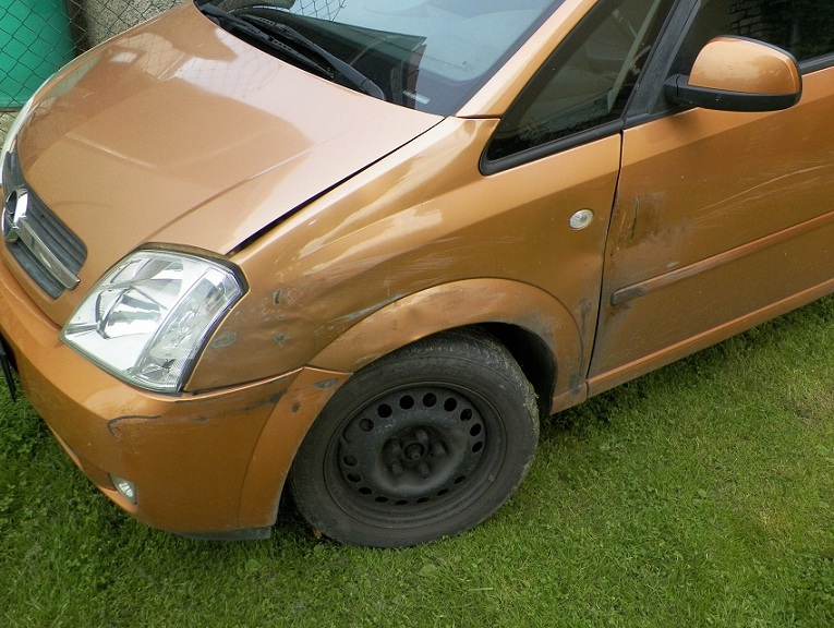 bouchnutý přední nárazní, odřené dveře a bouchnutý levý zadní roh (ten bolí nejvíc)