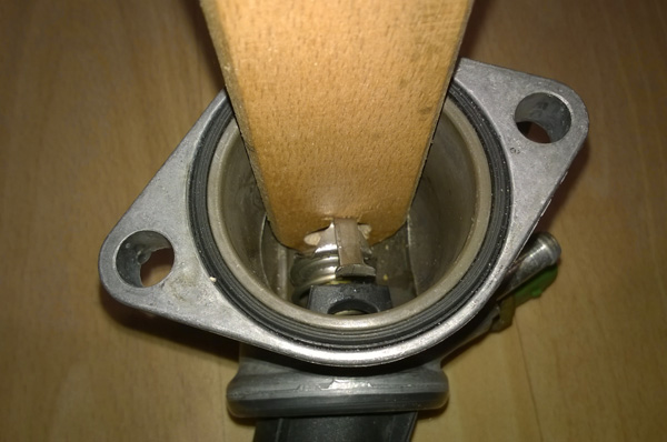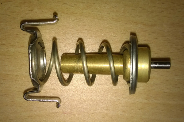 Pokud by toto nebylo dostatečné, tak je možné ještě trochu zkrátit vodící čep, ale velikost zkrácení se dá dost těžko vyzkoušet, protože v autě je termostat pod tlakem proudící kapaliny a tedy otevírací teplota je jiná než v hrnci na sporáku.