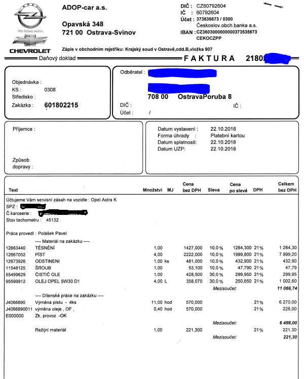 Technik mi potvrdil že je to pravidelna chyba u tohto motoru, ale bohužial Opel sa k tomu nepriznáva a tak som si to musel zaplatiť...