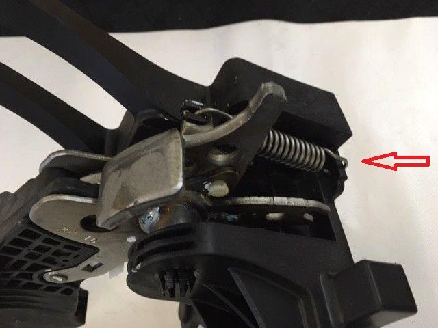 Jsou dva typy pružin v horní části spojkového pedálu. Prostříknutí tekutým mazivem typu WD40 není dlouhodobé řešení, ale taky se tím nic nezkazí, je možné i přes díru u páčky nastavení volantu.