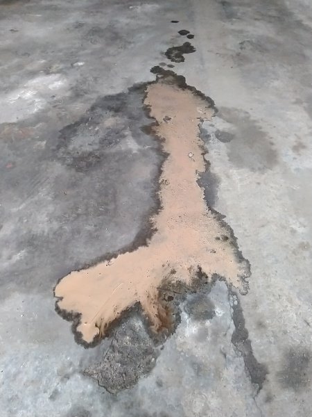 Louže pod autem. Olej, písek, nebo co to je?