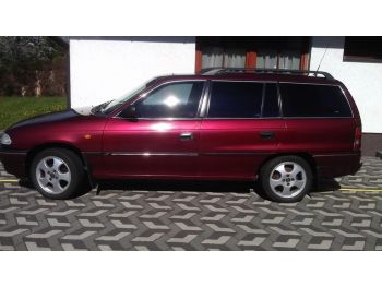 Prodám Opel Astra Caravan s LPG,nádrž do r. 2015,r.v.1998,vínově červená metalíza, TZ,hagusy,rádio,okenní folie,střeš.okno v el.,ekopoplatek zaplacen..